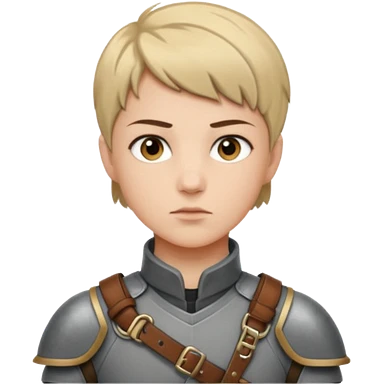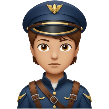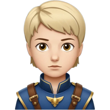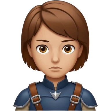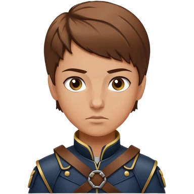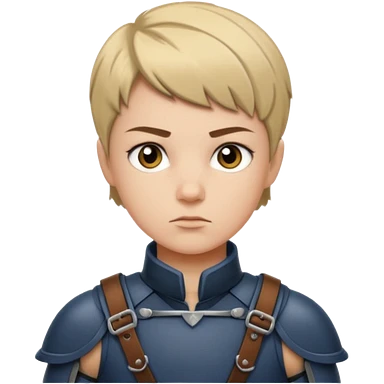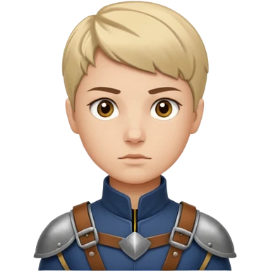 A young legionnaire with short hair, leather straps, and determined focused eyes. emoji