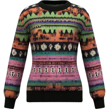 Still life, render, isolated, whimsical pattern print and color scheme, womens sweater, highly detailed, 8k. No emoji icons, no emoji faces, no human figures emoji
