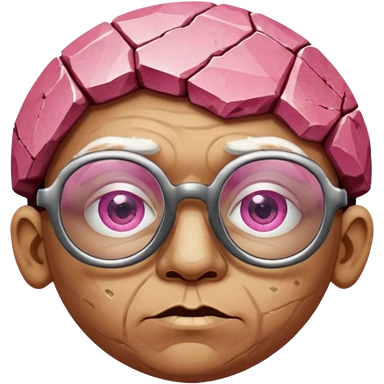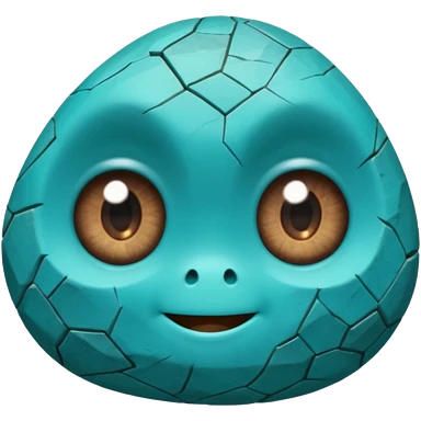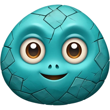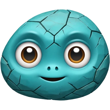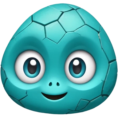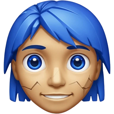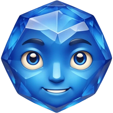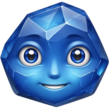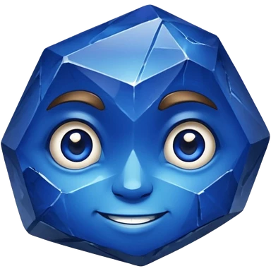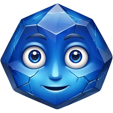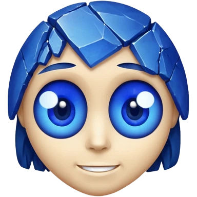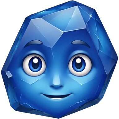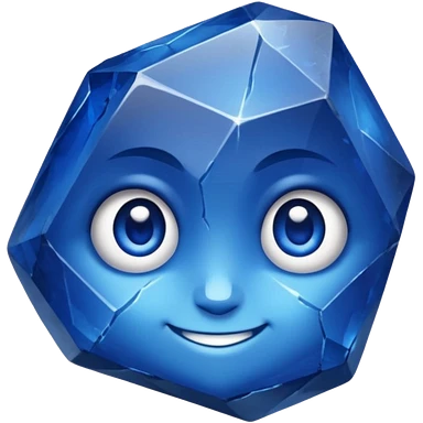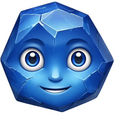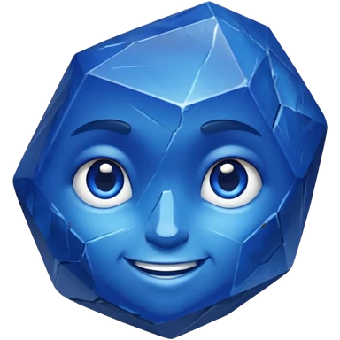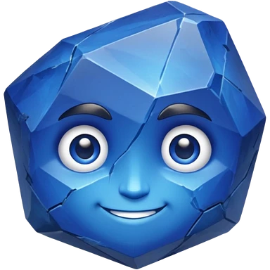 A single sapphire-blue faceted rock head, chunky and worn, with very visible big cracks and chipped facets but still shiny, big kind eyes and a confident smile emoji | AI Emoji Generator