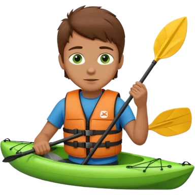 a boy with brown hair and green eyes in a kayak emoji