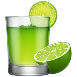 A single whiskey shot with a single slice of green lemon piece on it emoji | AI Emoji Generator