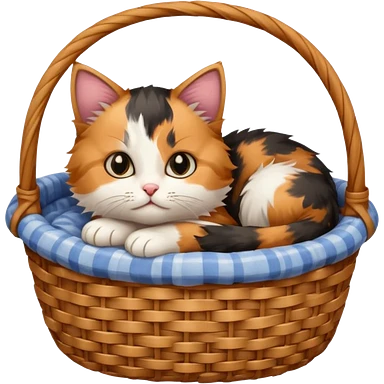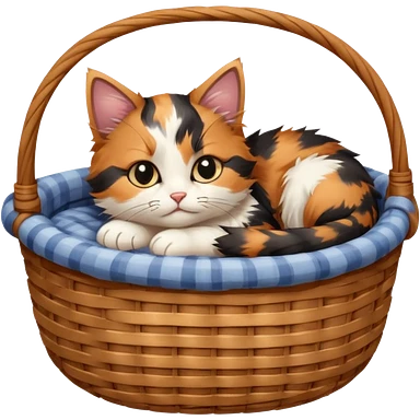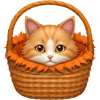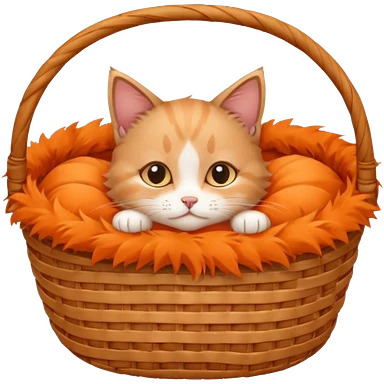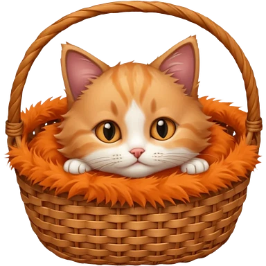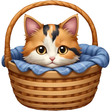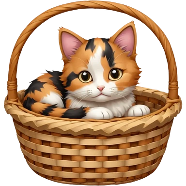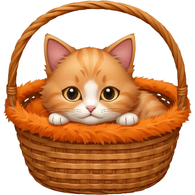 A fluffy kitten curled inside a wicker basket with sleepy eyes. emoji