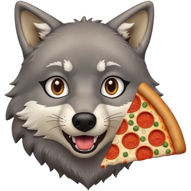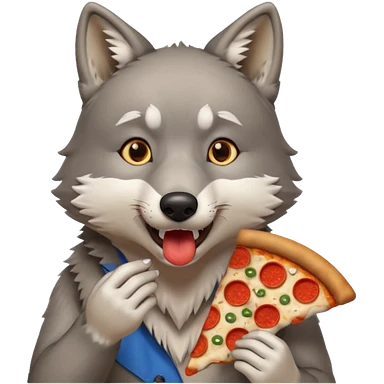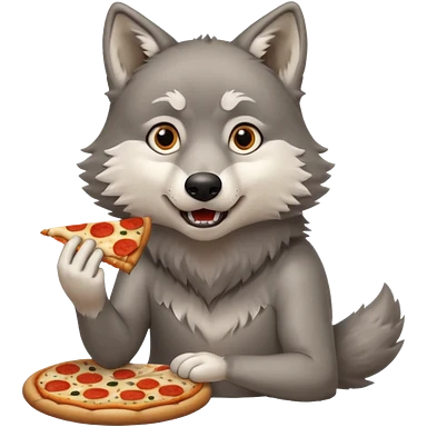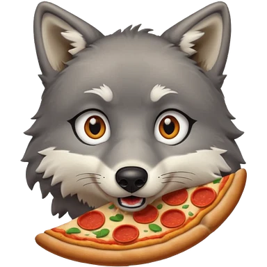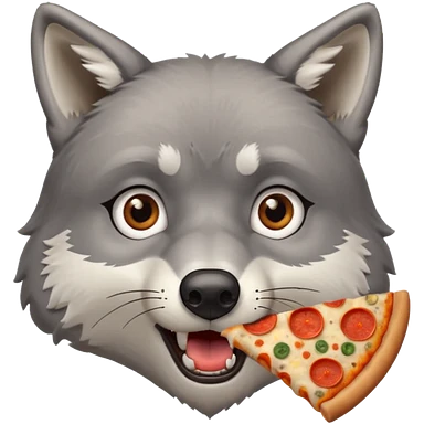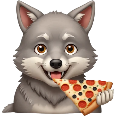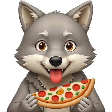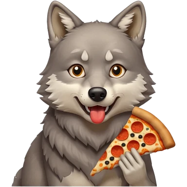 a sitting surprised grey wolf eating a piece of pizza emoji emoji | AI Emoji Generator