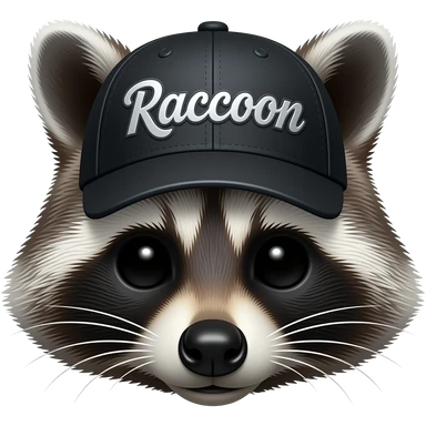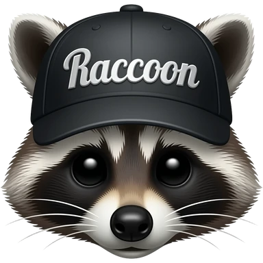 A raccoon skeleton head thats wearing a black baseball cap that says "Raccoon" with silver lettering and white bordering emoji