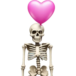 White skeleton with a pink bow emoji