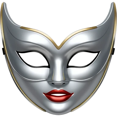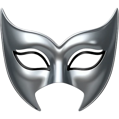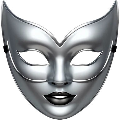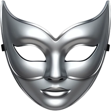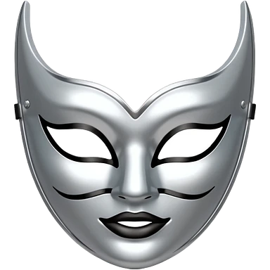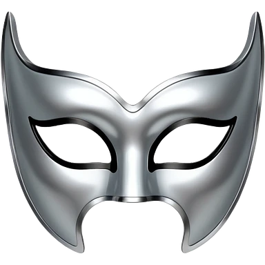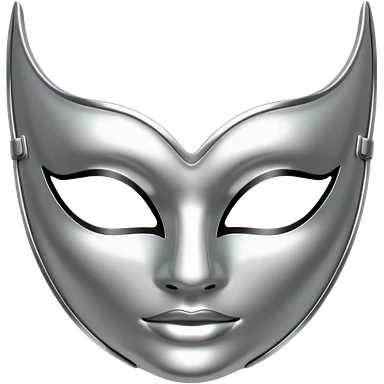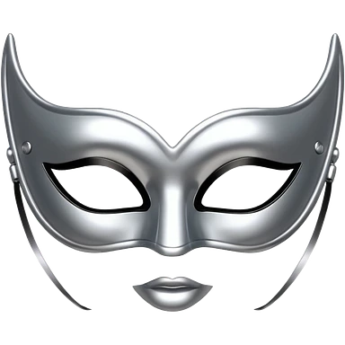 A sleek masquerade mask emoji made of polished silver chrome, smooth sensual curves, reflective metallic surface, mysterious sexy luxury vibe, minimal iOS emoji style, centered, clean white background emoji | AI Emoji Generator