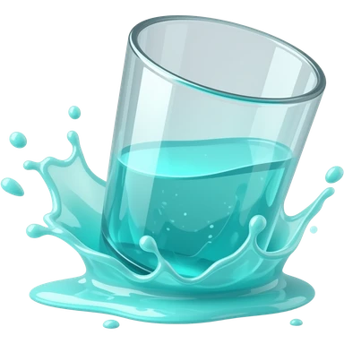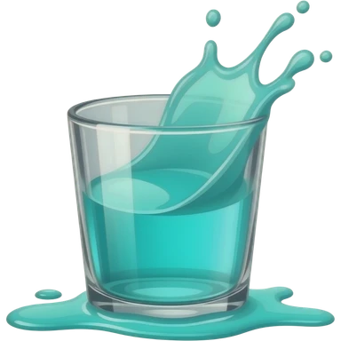 a glass with neon-glowing-cyan liquid spilling out and splashing around emoji