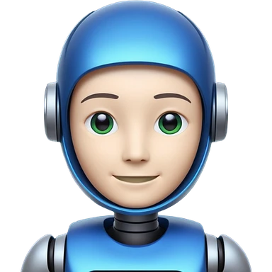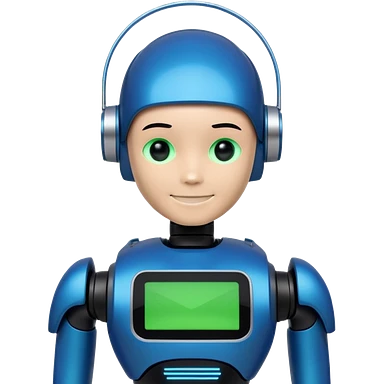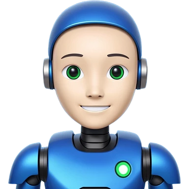 A sleek, very meme robot avatar designed in a modern tech style. The robot has an LED display face showing a subtle smile, and its body is detailed using Intapp brand colors: Intapp Blue (#207CEC) Bright Green (#22ECCF) Dark Blue (#003C80) Black (#021123) emoji | AI Emoji Generator