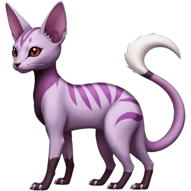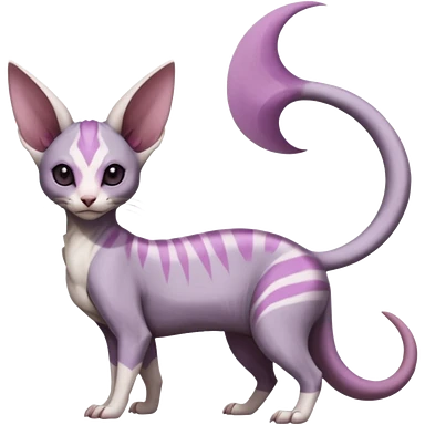 A sleek white cat with black markings on its head and body, large upright black ears, golden-yellow eyes, and a light pink nose, lying on a crocheted white mat. emoji | AI Emoji Generator