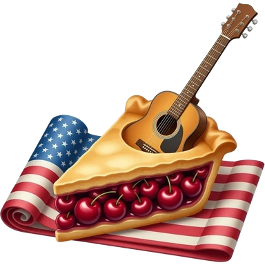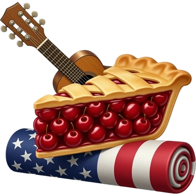 a slice of cherry pie resting on a rolled up old American flag emoji | AI Emoji Generator