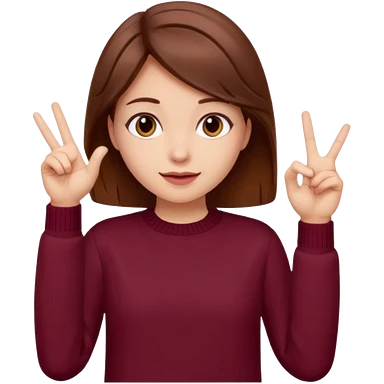 A girl with brown hair smiles, wearing a burgundy sweater, and shows an okay gesture. emoji