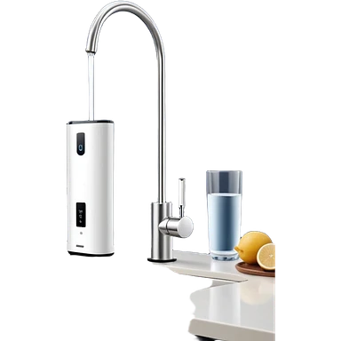“A slim countertop direct-flow water purifier without water tank, minimal white design with a single faucet, standing on a kitchen counter, soft lighting, modern style” emoji | AI Emoji Generator