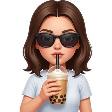A girl with having boba tea in her hands wearing savage sunglasses and with attitude emoji