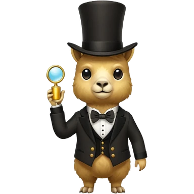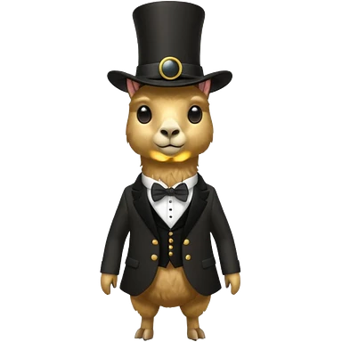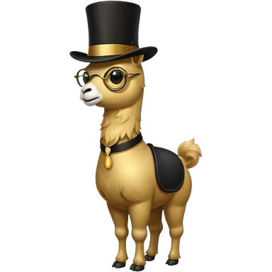 A small golden llama silhouette wearing a black top hat and a monocle emoji