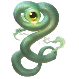 A small, pale, ethereal serpent with a delicate, almost translucent body, coiled around the socket of Messmer's eye, with a subtle, shimmering glow emoji | AI Emoji Generator