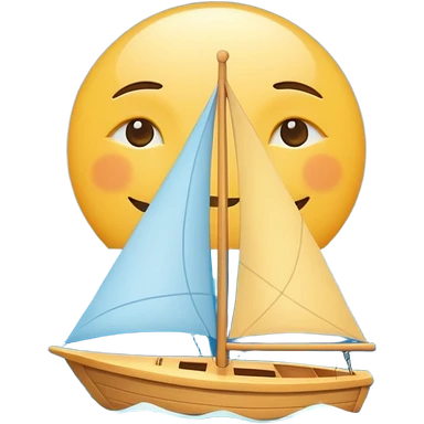 A small sailboat emoji sailing on the ocean, with half the sky showing the sun and half showing the moon. Minimal vector style, soft gradients, white background. emoji | AI Emoji Generator