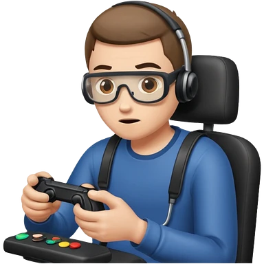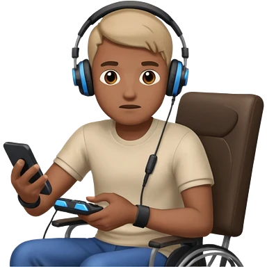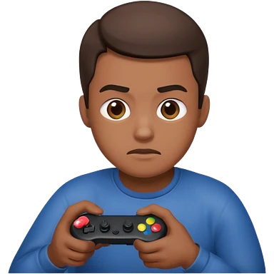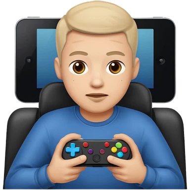A boy with half gary hair and half red hair playing video game in is mobile emoji