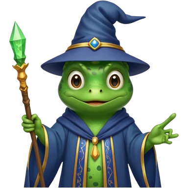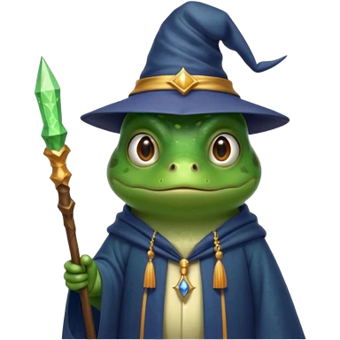 A smart frog in a hat and robes holds a pointer and with a smart face points out the mistake emoji | AI Emoji Generator