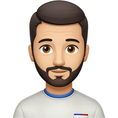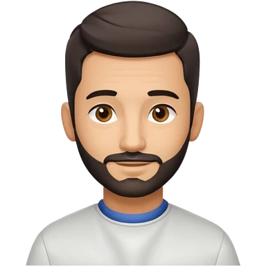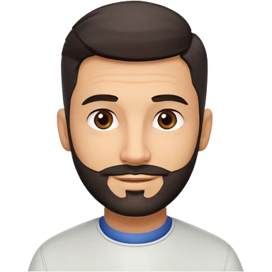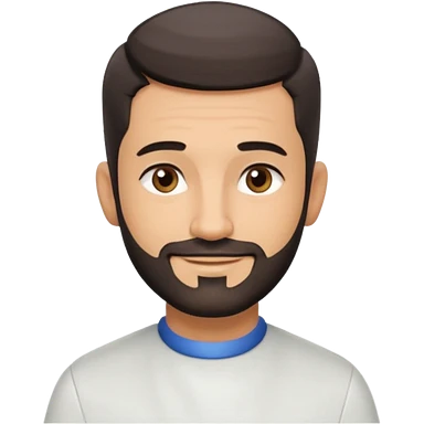 Apple-style 3D emoji of a male barber, dark graying straight hair styled forward in a crop haircut, light stubble beard, warm olive skin, brown eyes, friendly confident smile, slightly raised eyebrows, calm welcoming expression, soft studio lighting, clean background, high quality vector-like render emoji