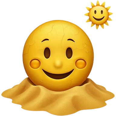A smiley face positioned behind a brown beach emoji