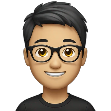 The young Chinese boy WITH black EYES smiled with short hair, black-rimmed glasses and a black T-shirt. emoji