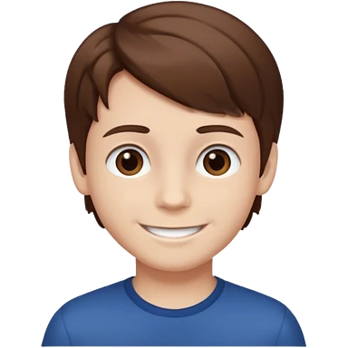 a 13 year old boy smiling with blue eyes and pale tan skin color, straight hair covering fore head brown emoji