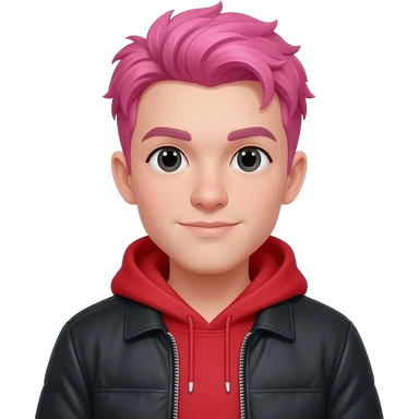 A guy is pink hair that wears a red hoodie under a black jacket emoji