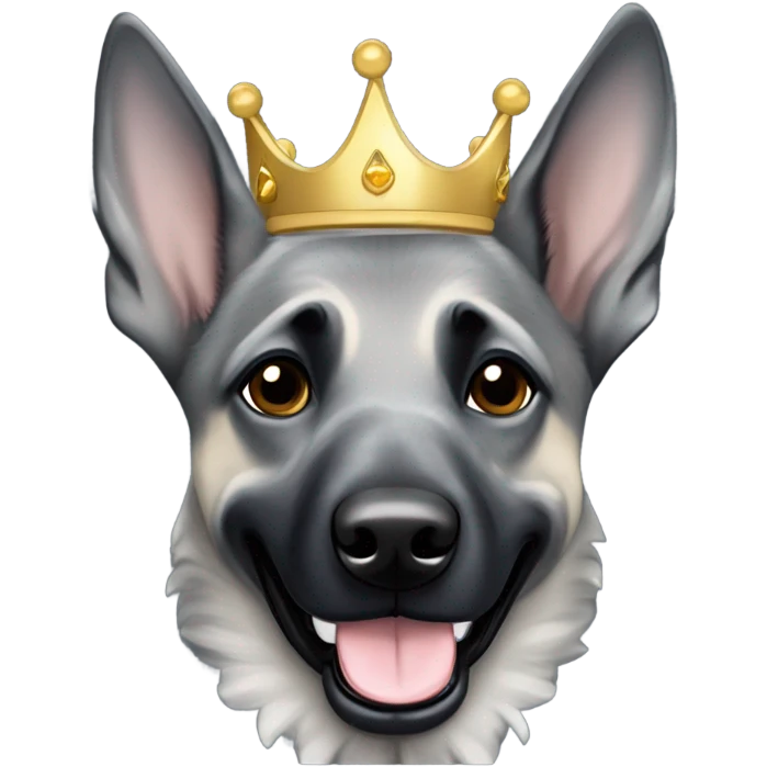 A smiling malinois dark blue merle color, without red and white color with a crown on his head emoji