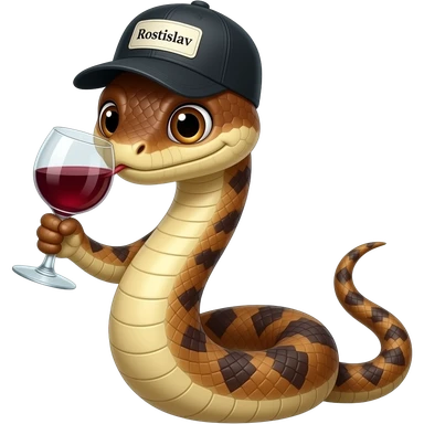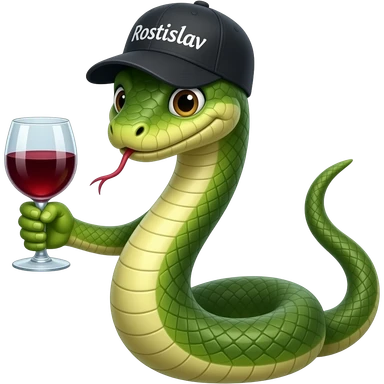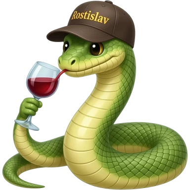 A snake in a cap with the inscription "Rostislav" on its tail holds a glass of wine. emoji