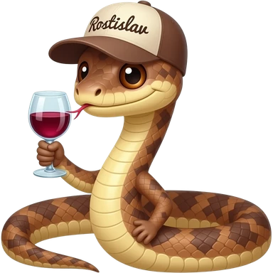 A brown-eyed snake wearing a cap with the inscription "Rostislav" drinks wine. emoji