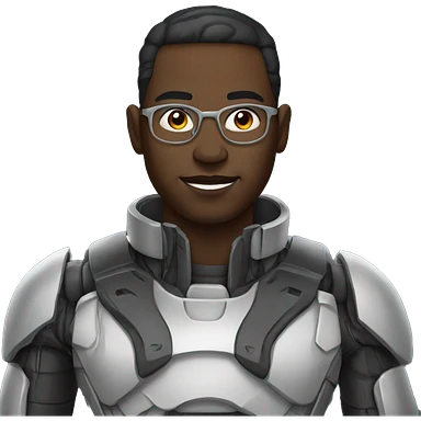 Muscular Afro teenage boy in a Cyborg superhero costume standing on a spaceship. emoji