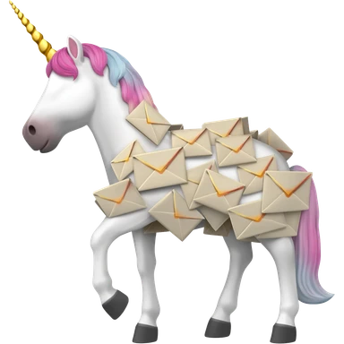 a magestic unicorn with a beard attacking email that are being thrown at him emoji