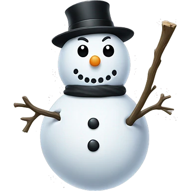 Snowman with a black hat rocks for eyes and a stick sticking out of the second snowball emoji