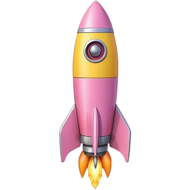 A single rocket, colored in pastel pink and yellow, glossy and smooth, cartoonish, vibrant colors, high detail, simple and cute design, isolated on white background, centered composition emoji