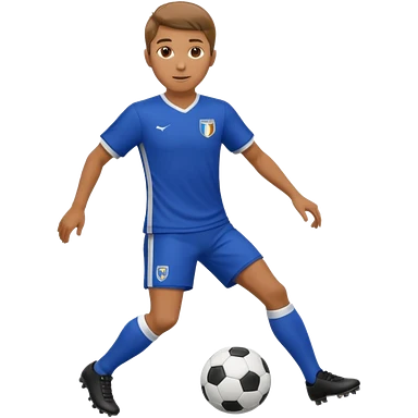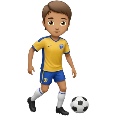 Female soccer player kicking a soccer ball with a royal blue kit with yellow trim on shoulder and shorts emoji