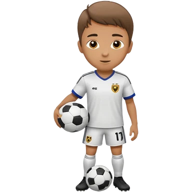 Make me a 14-year-old boy who is very handsome, a soccer player, dark-skinned, with black hair. emoji