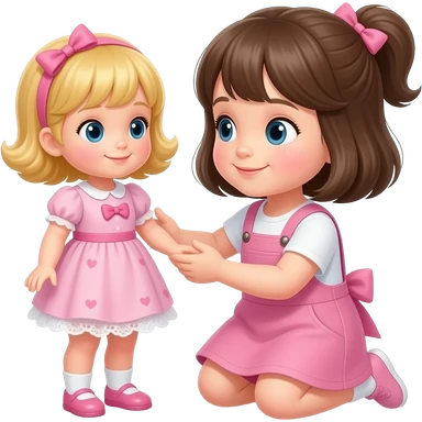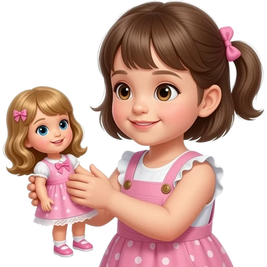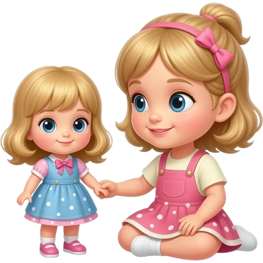 A small, soft toy doll with a cute face and simple clothes, symbolizing childhood and play emoji