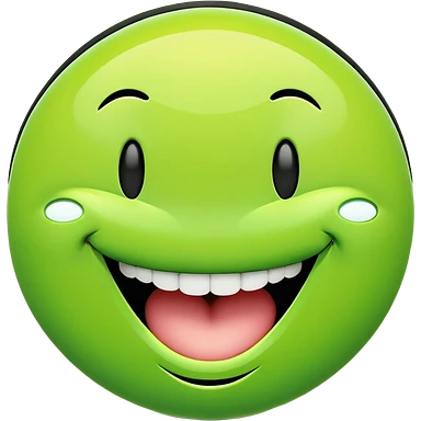 A bold, cartoon-style smiley face with a neon green background and thick black outlines. The face has large, closed eyes shaped like upside-down U's, and an extremely wide, exaggerated open-mouth smile showing four large square teeth. The overall expression is joyful and goofy. The entire face is perfectly round, centered, and symmetrical. emoji