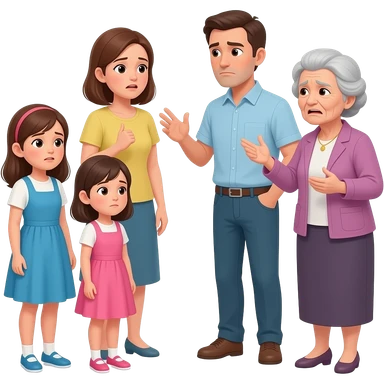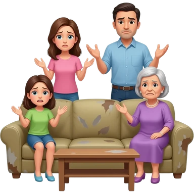 podrias hacer una imagen en base a esto: Conflictos familiares, hijas no colaboran y hay tensiones en casa.Ambiente familiar deteriorado, desgaste emocional, y desacuerdo sobre ingresar a la suegra en residencia. emoji