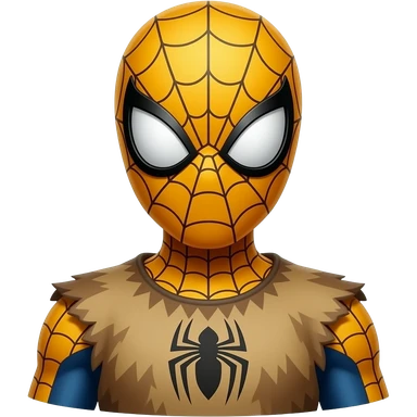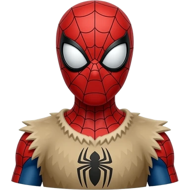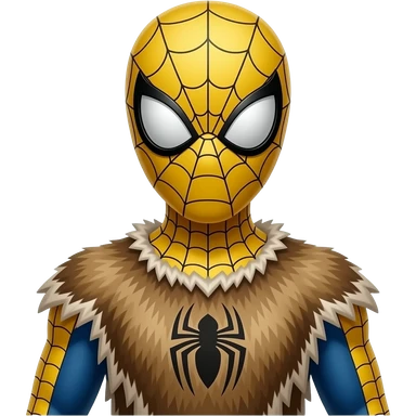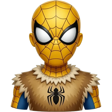 a SPIDERMAN wearing ancient animal skin cloth, half body, icon, yellow skin emoji