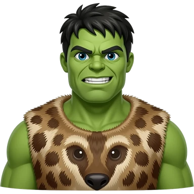 a SPIDERMAN AND HULK RED wearing ancient animal skin cloth, half body, icon, yellow skin emoji | AI Emoji Generator