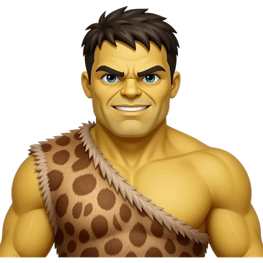 a Hulk wearing ancient animal skin cloth, half body, icon, yellow skin emoji