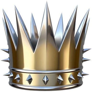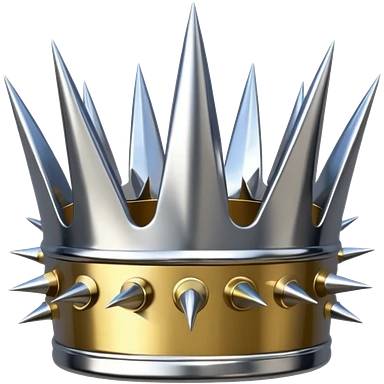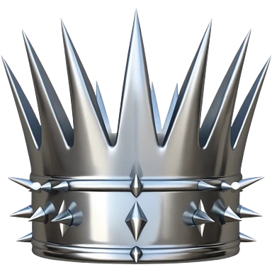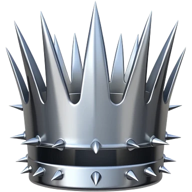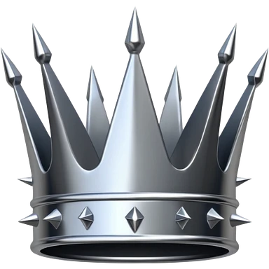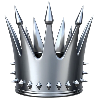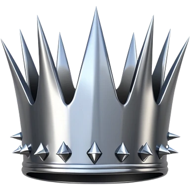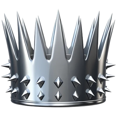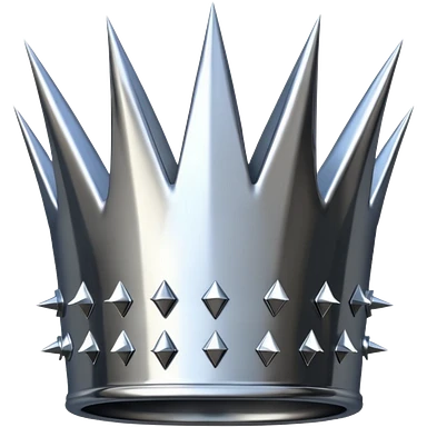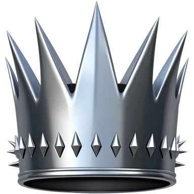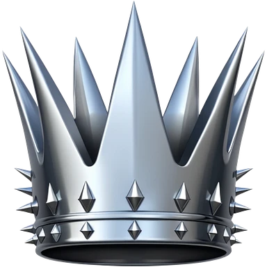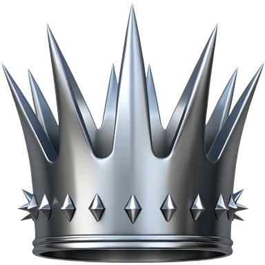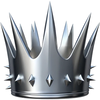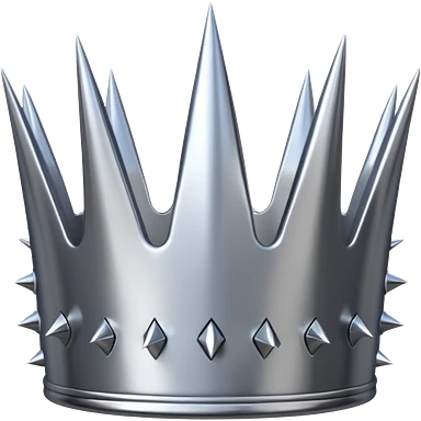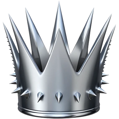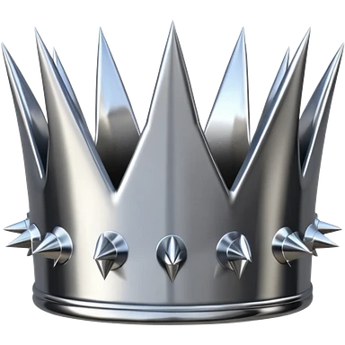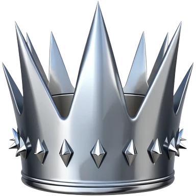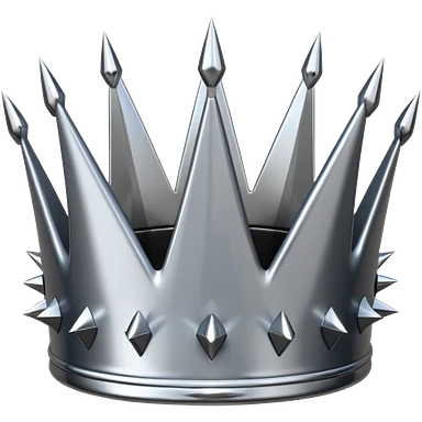 A spiked crown emoji made of silver chrome, sharp yet rounded metallic spikes, glossy reflections, aggressive luxury swag aesthetic, iOS emoji style, centered, clean white background