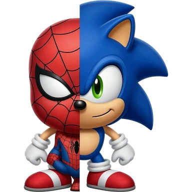A split-face head, half Sonic the Hedgehog and half spiderman emoji