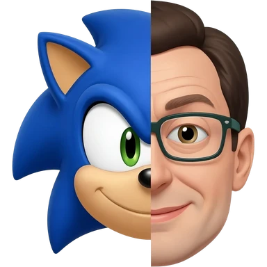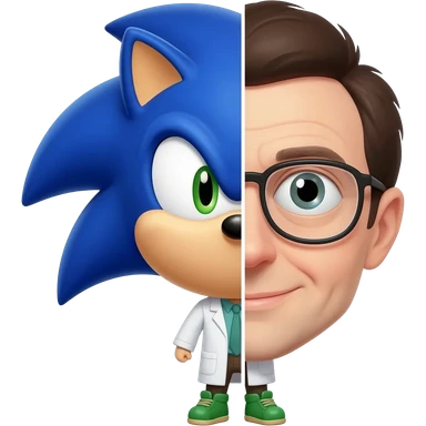 A split-face head, half Sonic the Hedgehog and half Sheldon Cooper emoji