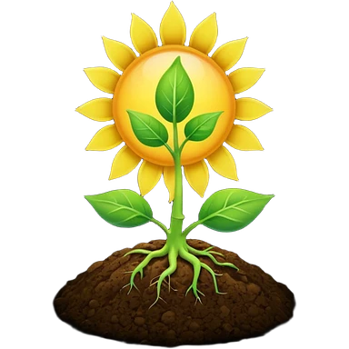 A sprout from the ground, the sun in the corner, a blue background emoji | AI Emoji Generator