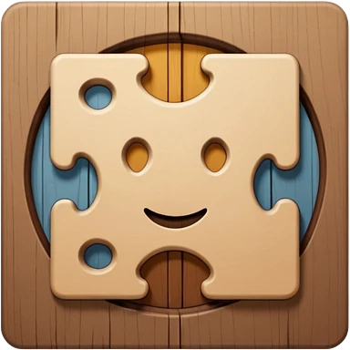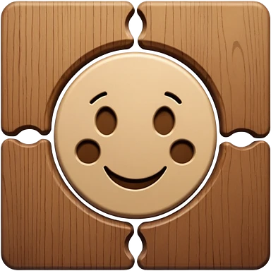 A wooden puzzle animal character with interlocking pieces and a happy expression emoji