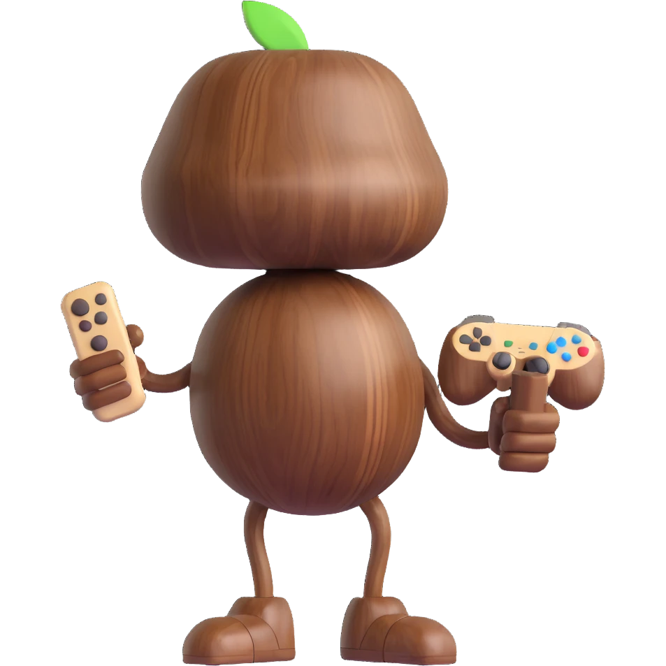 A standing walnut holding a game controller emoji | AI Emoji Generator