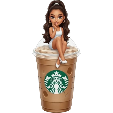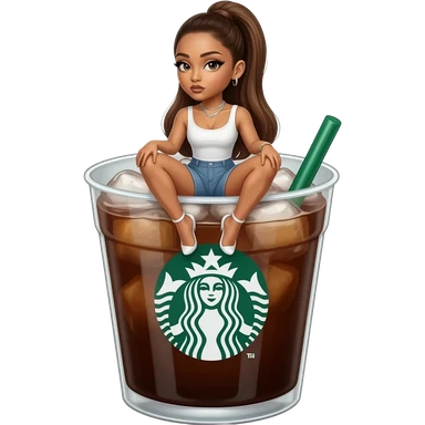 a Starbucks Americano with ice, Ariana Grande is sitting on top of the cup emoji