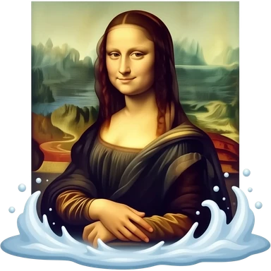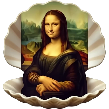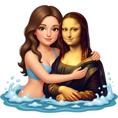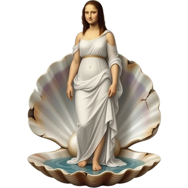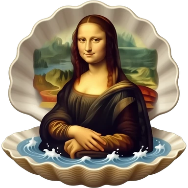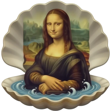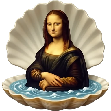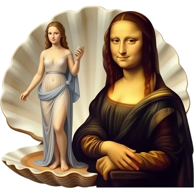 a realistic - Venus, according to a painting by Sandro Botticelli, is born from sea foam, embraced by a girl who has only the face of Da Vinci's Mona Lisa emoji